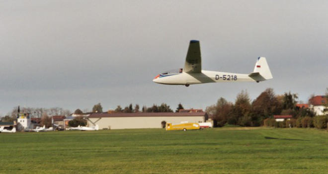 Andre Dorkelandre.dorkel@allgaeu.org19676076Burg Feuerstein, BayernEnde Oktober konnten wir beim letzten Flug dieser Saison in Kempten-Durach noch zwei Fotos der D-5218 "Paul" knippsen.Dieser Überprüfungsflug von einer Halbenstunde für die Jahresabnahme in der sogenannten "Illerwelle" - mit ganze 1 m/s auf bis zu 700 m am Platzzrand - war wieder ein besonderes Erlebnis vor der Bergkulisse der Allgäuer Alpen :-).Die SF27A mit der Werksnummer 6076 wurde 1967 gebaut und von Werksangehörigen in der IKARUS Luftsporttclub Schleißheim e.V. bis ins Jahr 2000 geflogen. Dann kam sie durch einen Bekannten der Brüder Reiner und Hans Schmid (D-8364) nach Kempten-Durach.Und seit bald 2 Jahren ist ihr Standort nun Burg Feuerstein.