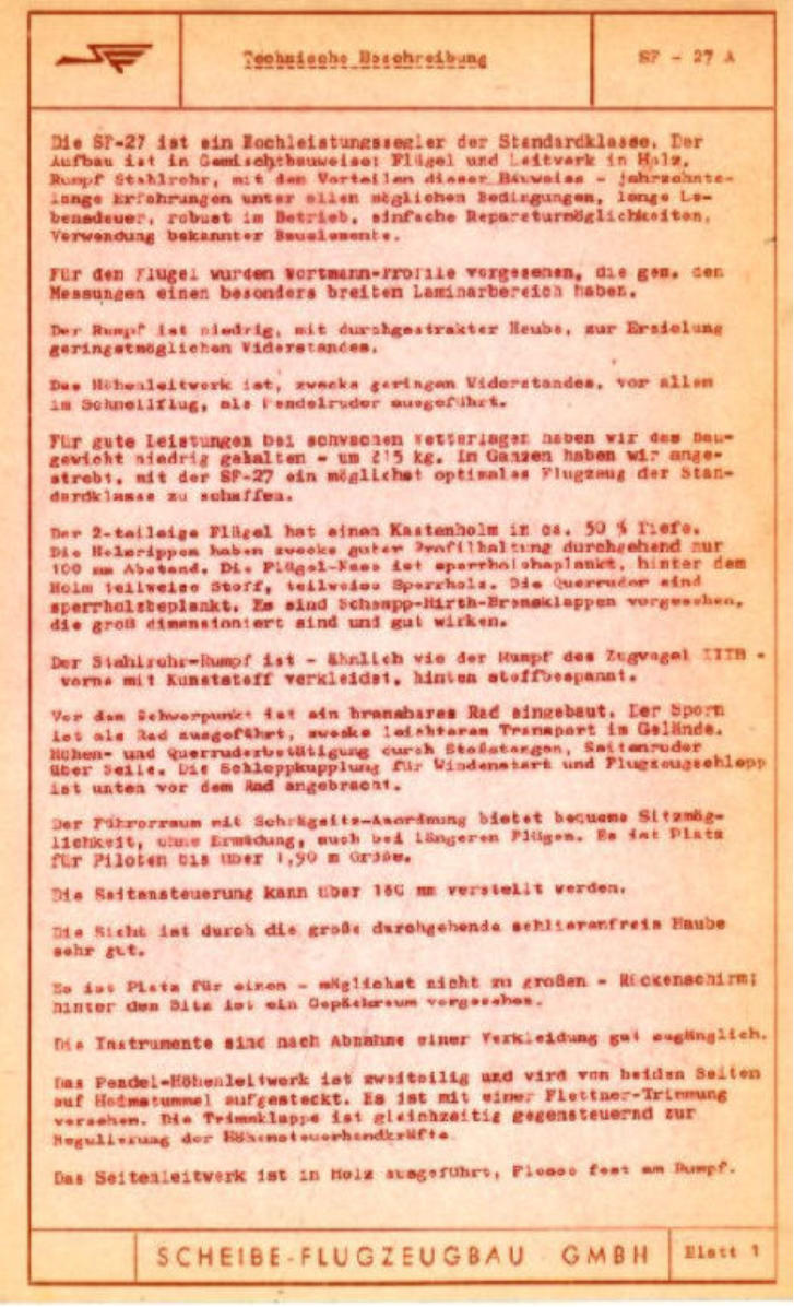 Die orginal Beschreibung der Scheibe Flugzeugbau GmbH: